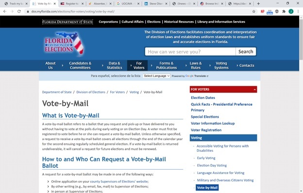 Generally speaking, Florida does a better job than California of presenting information about mail in voting in a clear, easy to find and digest manner. The main landing page is a big upgrade.