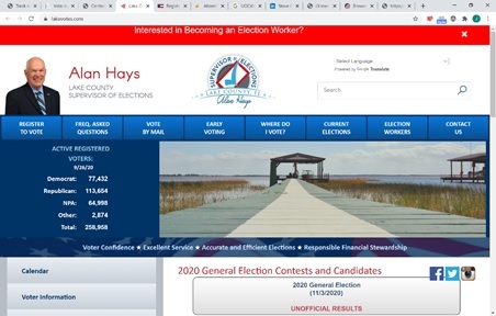 A user who clicks on “Mail Ballot Request Form” is taken to a page that checks if you are a registered voter in Lake County. We are not, so our journey ended here.