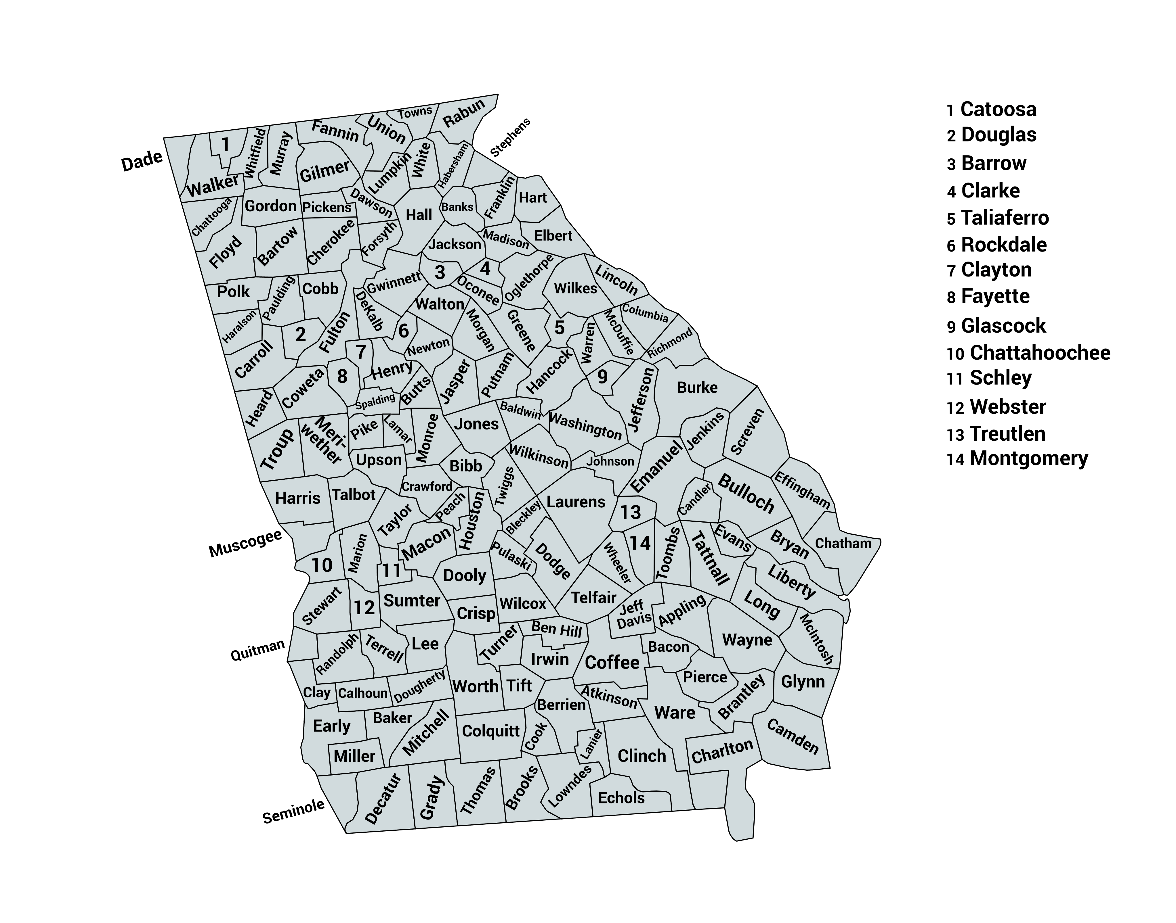 - They are each electorally significant, i.e. each represents the largest number of electoral college votes within their category; California has the most votes of consistently “blue” states (55), Georgia among the “red” (16), and Florida among the “purple” or “swing” states (29).